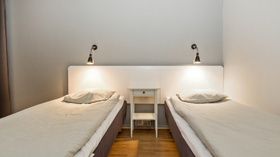 - Två 90 cm sängar - Hårtork och telefon - 40 tum platt tv - Dusch - Fri tillgång till bastu, pool och motionsrum